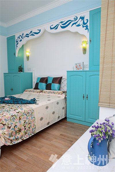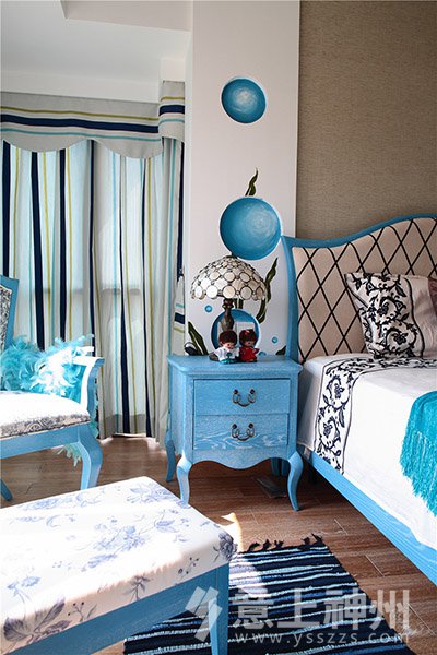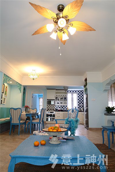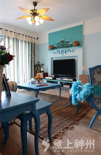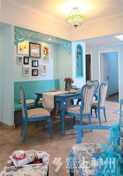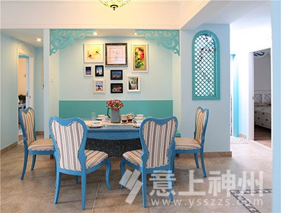 藍(lán)與白的色彩搭配,選擇空曠處做成了充滿愛(ài)意的照片墻,寧?kù)o不失溫馨。地中海裝修風(fēng)格—意上神州裝飾